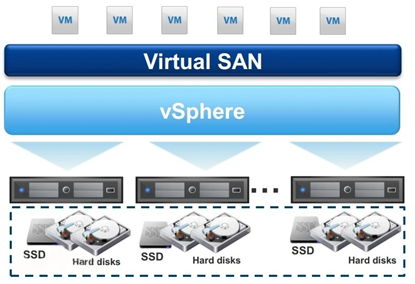 VSAN与Datacore等SDS厂商类似,把控制器内封闭的存储管理软件独立出来,管理平面与数据平面完全分离,不同的是,VSAN采纳分布式对象存储架构,同时其存储资源管理平台SPBM可扩展延伸管理VVOL卷及更多存储对象